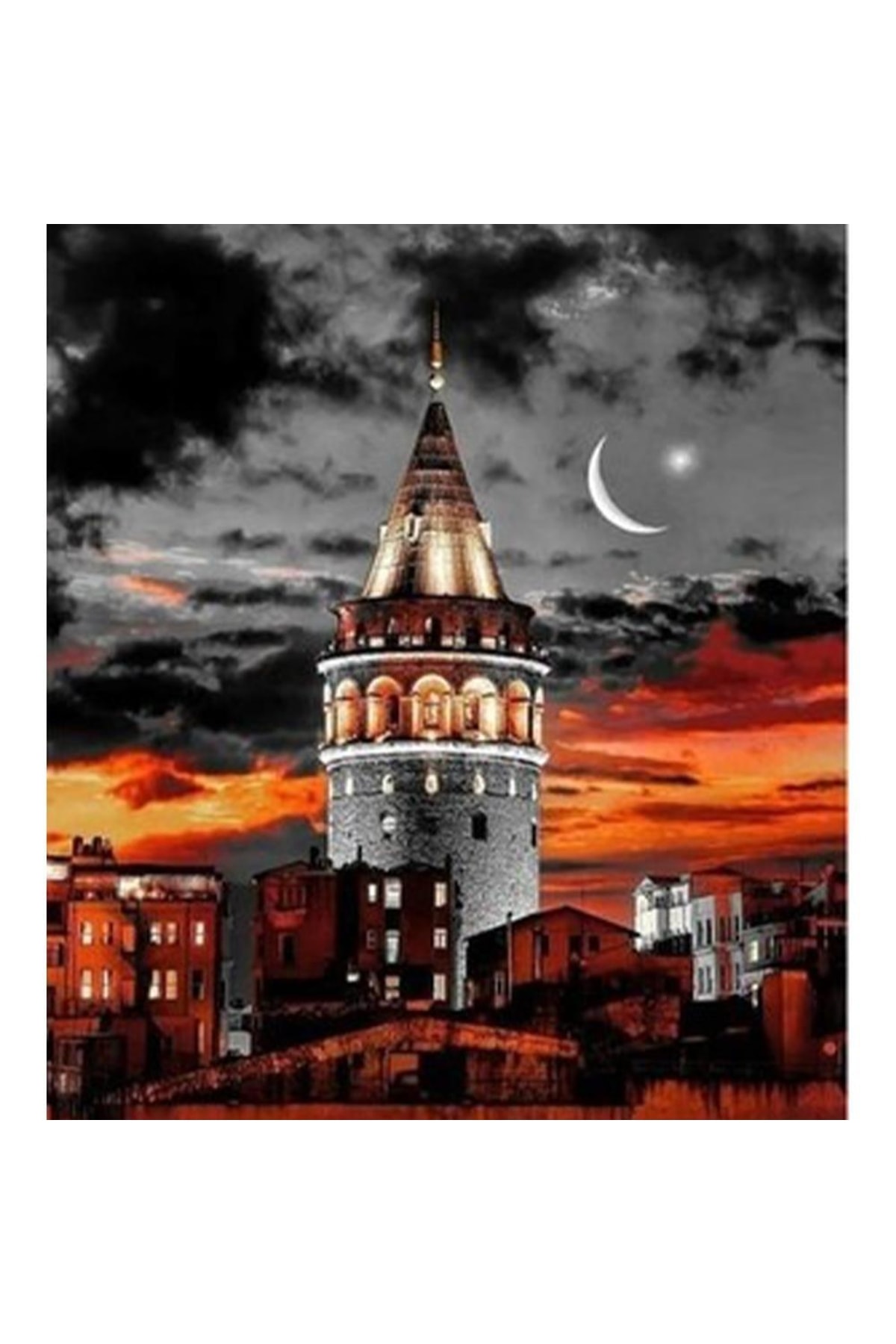 Galata Kulesi 50×65 cm Sayılarla Tablo Galata Kulesi 50×65 cm Sayılarla Tablo, hobi ürünümüzü kendi başınıza, ailenizden biriyle ve ya arkadaşlarınızla beraber ortaya çıkarabilirsiniz. Satın aldığınız Galata Kulesi Sayılarla Tablomizin içinde; -50*65 cm boyutunda tuval şasesine gerilmiş tuval kanvası, -3 adet farklı boyutta fırçası (küçük, büyük, orta), -İhtiyacınız olacak tüm su bazlı akrilik boyaları, -Kullanım kılavuzu, -Resmin ortaya çıktığında görünecek halinin küçük bir önizlemesi ile birlikte sizlere ücretsiz kargolanmaktadır. Tek yapmanız gereken beğendiğiniz Galata Kulesi Sayılarla Tabloni ortaya çıkarmak için tuval üzerinde numaralandırılmış bölgelere karşılık gelen yerleri ona uygun boya ile boyamak. Sayılarla Tablonizin boya ve fırça ürünleri size tam yetecek şekilde gönderilmiştir. Boyama işlemi bittiği zaman dilerseniz evinizin bir köşesine asabilir veya arkadaşlarınızın özel günlerinde onlara hediye edebilirsiniz.