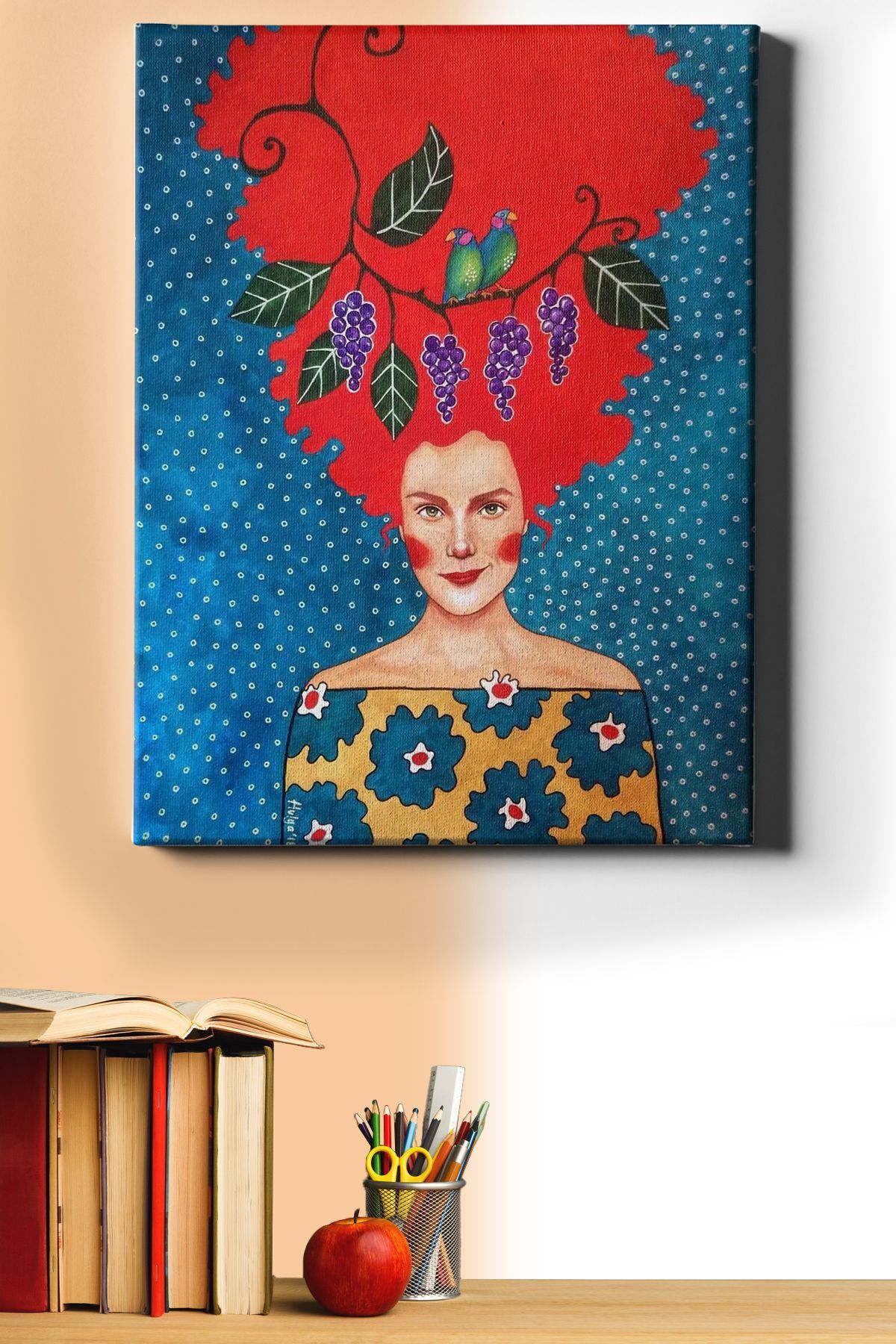 Kırmızı Saçlı Kadın Boyama Seti 40x50cm Kırmızı Saçlı Kadın Sayılarla Boyama Seti , hobi ürünümüzü kendi başınıza, ailenizden biriyle ve ya arkadaşlarınızla beraber ortaya çıkarabilirsiniz. Satın aldığınız Kırmızı Saçlı Kadın Sayılarla Boyama Setinin içinde; -40x50cm boyutunda gerilmiş tuval kanvası -3 adet farklı boyutta fırçası (küçük, büyük, orta), -İhtiyacınız olacak tüm su bazlı akrilik boyaları, -Kullanım kılavuzu, -Resmin ortaya çıktığında görünecek halinin küçük bir önizlemesi ile birlikte sizlere ücretsiz kargolanmaktadır.