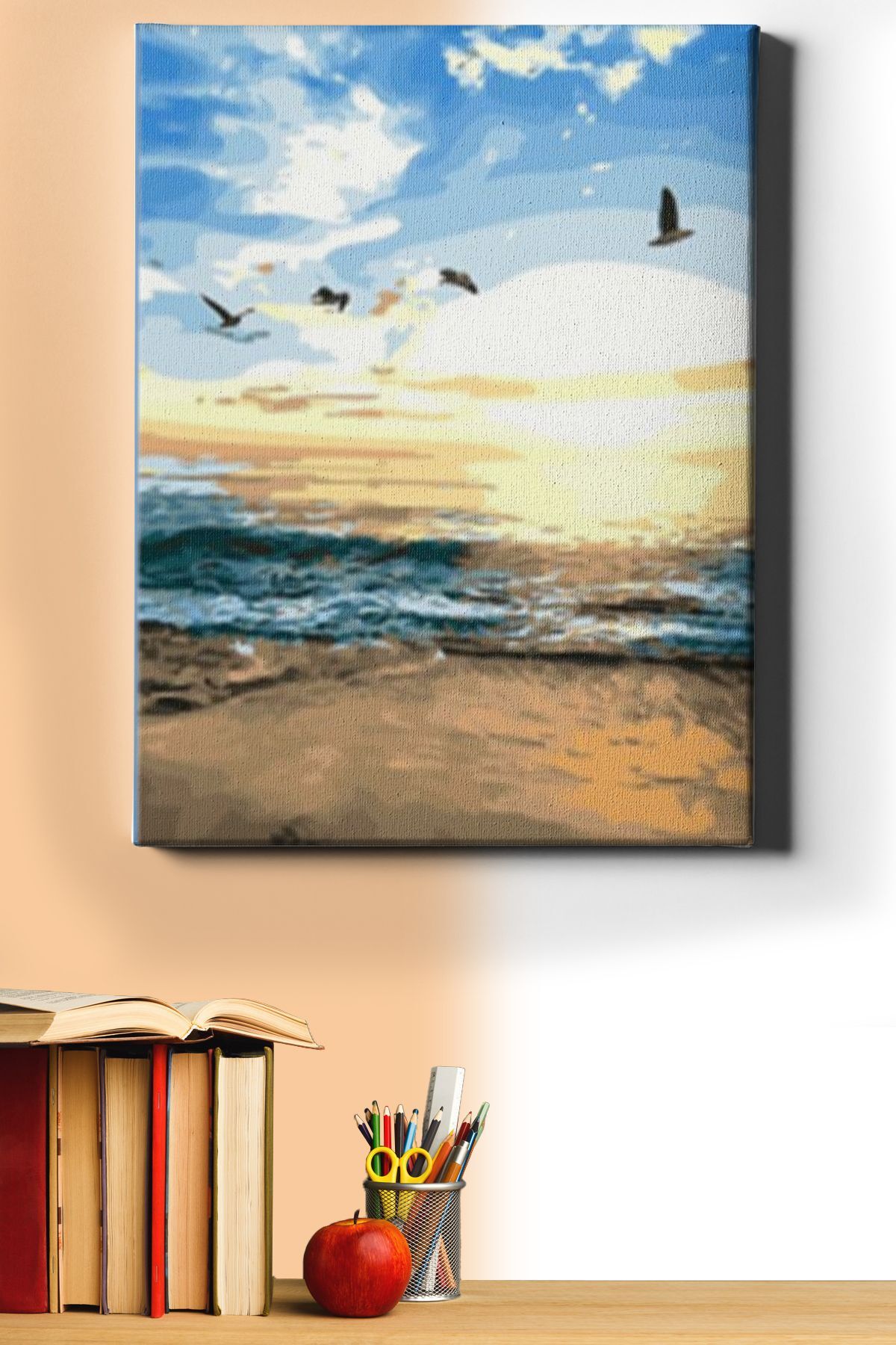 Kumsal Boyama Seti 40x50cm Kumsal Sayılarla Boyama Seti , hobi ürünümüzü kendi başınıza, ailenizden biriyle ve ya arkadaşlarınızla beraber ortaya çıkarabilirsiniz. Satın aldığınız Kumsal Sayılarla Boyama Setinin içinde; -40x50cm boyutunda gerilmiş tuval kanvası -3 adet farklı boyutta fırçası (küçük, büyük, orta), -İhtiyacınız olacak tüm su bazlı akrilik boyaları, -Kullanım kılavuzu, -Resmin ortaya çıktığında görünecek halinin küçük bir önizlemesi ile birlikte sizlere ücretsiz kargolanmaktadır.”