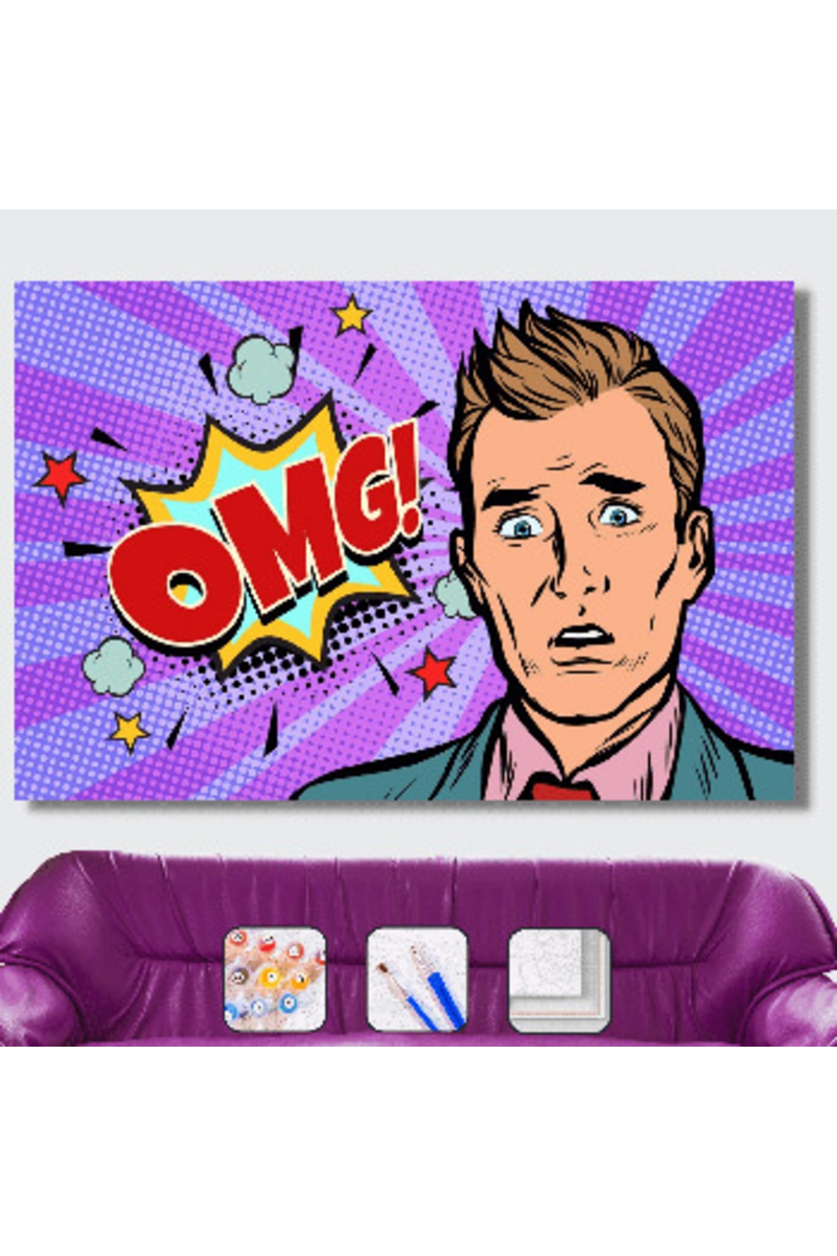 Omg! Boyama Seti 40x50cm Omg! Sayılarla Boyama Seti , hobi ürünümüzü kendi başınıza, ailenizden biriyle ve ya arkadaşlarınızla beraber ortaya çıkarabilirsiniz. Satın aldığınız Omg! Sayılarla Boyama Setinin içinde; -40x50cm boyutunda gerilmiş tuval kanvası -3 adet farklı boyutta fırçası (küçük, büyük, orta), -İhtiyacınız olacak tüm su bazlı akrilik boyaları, -Kullanım kılavuzu, -Resmin ortaya çıktığında görünecek halinin küçük bir önizlemesi ile birlikte sizlere ücretsiz kargolanmaktadır.