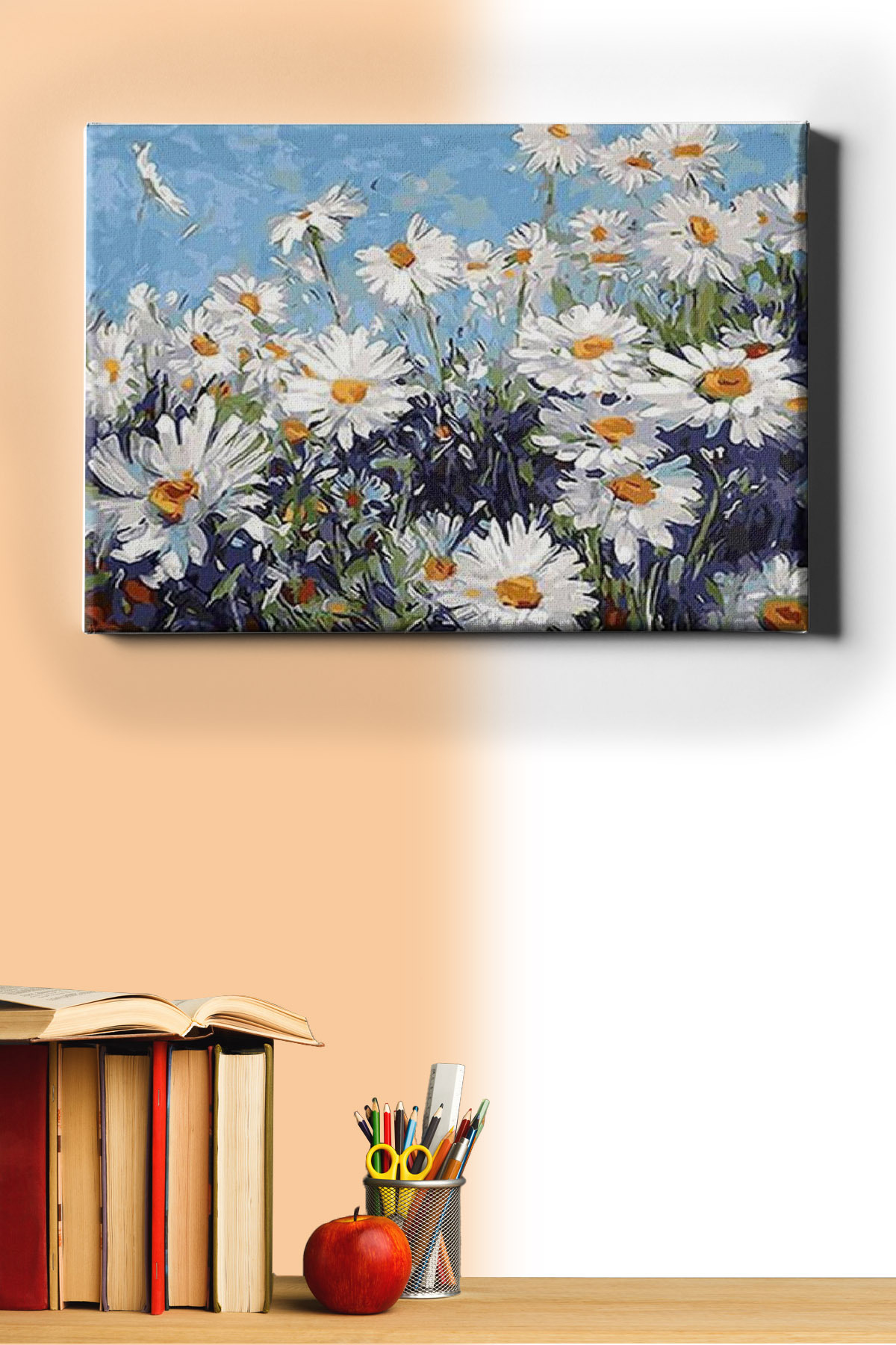Papatyalar Boyama Seti 50x65cm Papatyalar Sayılarla Boyama Seti , hobi ürünümüzü kendi başınıza, ailenizden biriyle ve ya arkadaşlarınızla beraber ortaya çıkarabilirsiniz. Satın aldığınız Papatyalar Sayılarla Boyama Setinin içinde; -50x65cm boyutunda gerilmiş tuvalkanvası -3 adet farklı boyutta fırçası (küçük, büyük, orta), -İhtiyacınız olacak tüm su bazlı akrilik boyaları, -Kullanım kılavuzu, -Resmin ortaya çıktığında görünecek halinin küçük bir önizlemesi ile birlikte sizlere ücretsiz kargolanmaktadır.