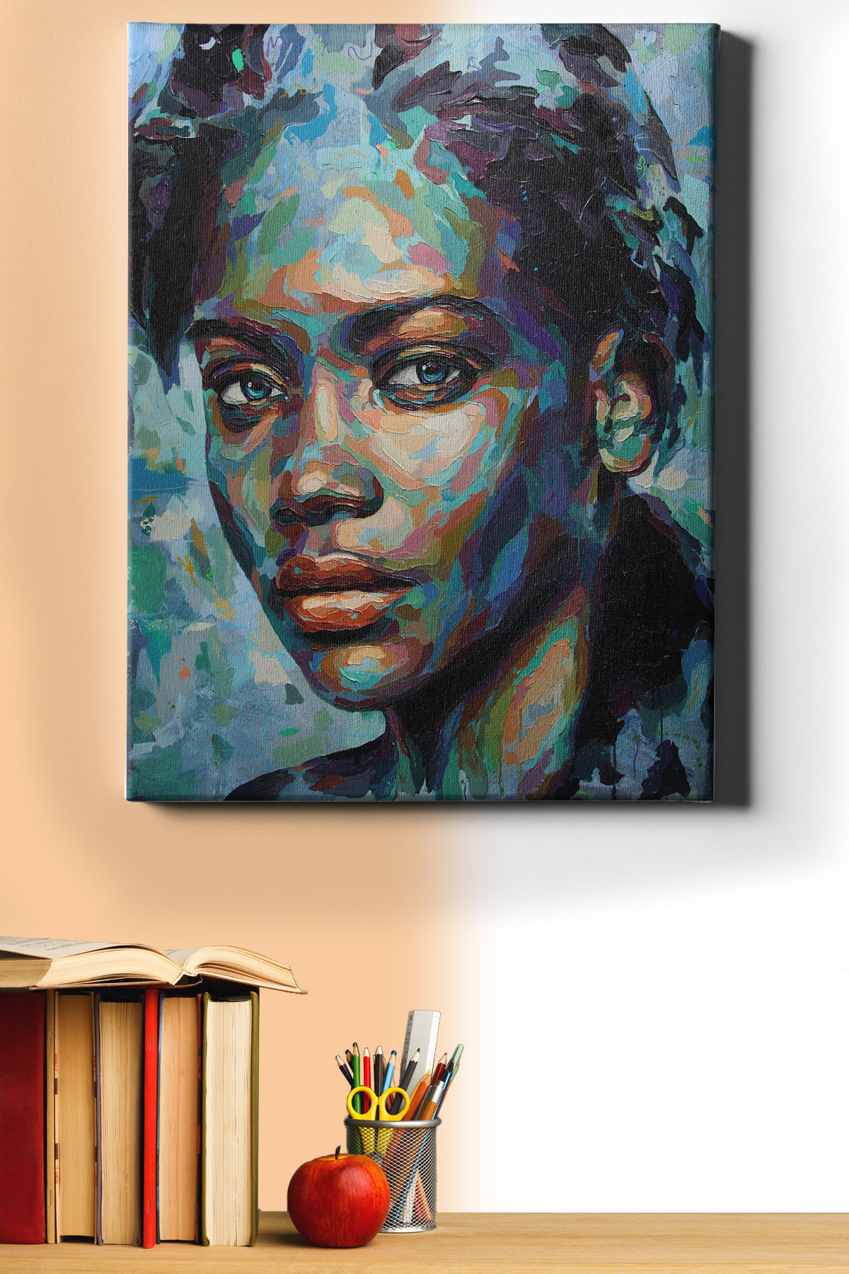 • Dikkat Çekici Tasarım: Renkli yüz tasarımı, modern ve estetik bir görünüm sunar. Evinizin veya ofisinizin duvarlarını süslemek için mükemmel bir seçimdir. (Fayda: Ortama sanatsal bir dokunuş katar.)