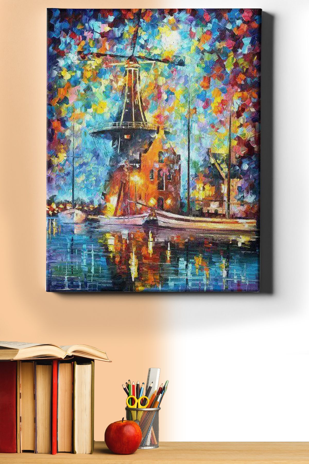 Yel Değirmeni Boyama Seti 50x65cm Yel Değirmeni Sayılarla Boyama Seti , hobi ürünümüzü kendi başınıza, ailenizden biriyle ve ya arkadaşlarınızla beraber ortaya çıkarabilirsiniz. Satın aldığınız Yel Değirmeni Sayılarla Boyama Setinin içinde; -50x65cm boyutunda gerilmiş tuvalkanvası -3 adet farklı boyutta fırçası (küçük, büyük, orta), -İhtiyacınız olacak tüm su bazlı akrilik boyaları, -Kullanım kılavuzu, -Resmin ortaya çıktığında görünecek halinin küçük bir önizlemesi ile birlikte sizlere ücretsiz kargolanmaktadır.